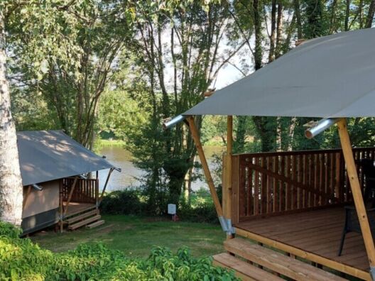 Deze kleinschalige camping heeft prachtige uitzichten over de Allier, Puy de Dome en de Creuse. Er zijn ruime parkeerplaatsen aanwezig voor de toegangspoort van de camping. Voor het vervoer van persoonlijke spullen van de auto naar de tenten zijn bolderkarren aanwezig. Verder is bbqén toegestaan met een eigen bbq. Bovendien heeft de camping een oplaadpunt voor elektrische fietsen en zijn honden (tegen een kleine vergoeding) welkom mits ze aangelijnd zijn op de camping. Daarnaast is er op de camping WiFi, een broodjesservice en een wasserette. Tot slot is er een buitenzwembad en een peuterbad voor de kleinste.