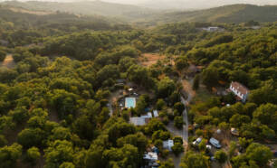 De kleinschalige maar charmante camping biedt een aantal luxe safaritenten aan in de schaduw van de kastanjebomen, daarnaast zijn er ook nog staanplaatsen.